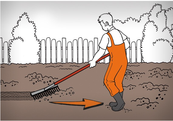 Maintenant que le sol est à nu et que toutes les plantes et mauvaises herbes ont été supprimées, il faut niveler le sol . Cette opération permet d’obtenir une surface plane et aérée. La mise à niveau se fait à l’aide d’un croc ou d’un râteau. Il s’agit de boucher les trous et d’aplanir les mottes .