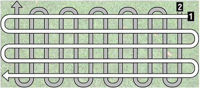 Il faut pousser le rouleau d’un bout à l’autre du terrain dans le but d’aplanir la surface, on fera plusieurs passages ( ici contrairement à la semée, il n’est pas nécessaire de croiser les passes. Des simples aller-retour suffiront ) .