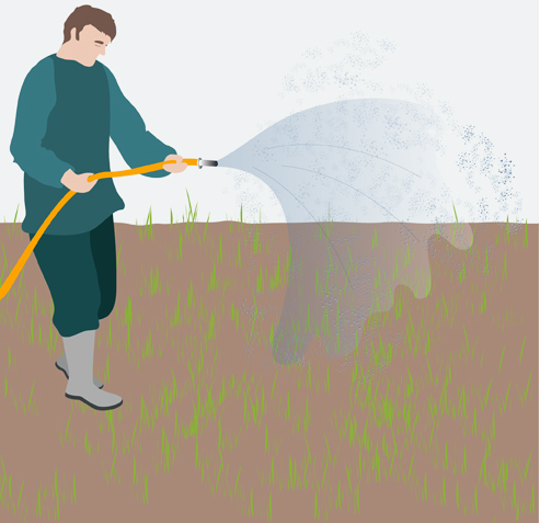 Pour les petites et moyennes surfaces un simple tuyau avec un embout à jet d’eau que l’on réglera sur le mode pluie fine fera l’affaire .